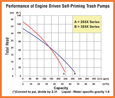 IPT 2S5XHR 2" Self-Priming High Volume, Self-priming Centrifugal Trash Pump comes standard with a cast iron impeller to resist abrasion and one tool serviceability for easy cleanout. The IPT 2S5XHR features aluminum housing, cast iron wear parts, built-in check valve, suction strainer and heavy duty steel roll frame. Heavy duty cast iron flanges with male NPT threads that rotates in 90° increments.