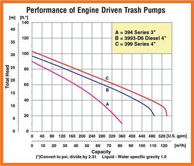 The AMT 3994-96 Self-Priming Trash Pump is designed for applications which require high flow efficiency and solid handling capability. The AMT 3994-96 is constructed of heavy duty sand cast aluminum components featuring removable/replaceable cast iron volutes, impellers and wear plates. Simple cleanout design permits easy removal of trash and debris without disconnecting hoses. Cast iron discharge port rotates in 90° increments. An electric start option is available on many models.