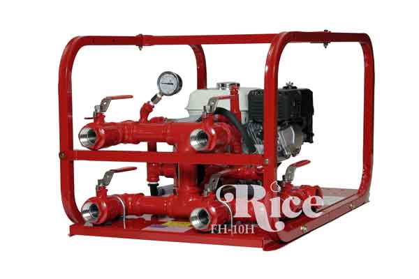 The Rice Hydro FH10-B Hydrostatic Fire Hose Tester is designed to safely test fire hose up to 6 inches in diameter. The FH3 has four independently controlled outlets, and a large 2-1/2" swivel inlet to quickly fill and bleed lines for testing. The FH10-B fire hose tester meets testing standards as set forth in the NFPA (1962.7) and the RMA.
